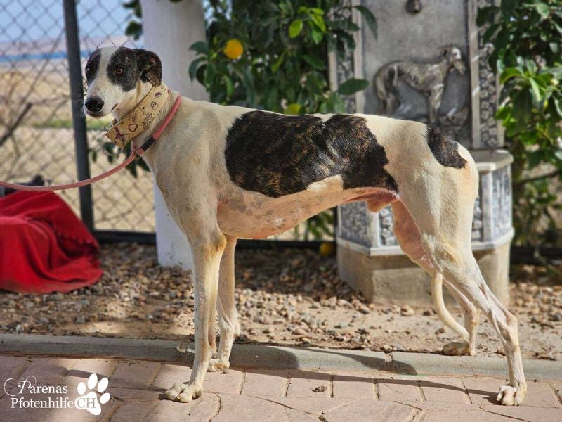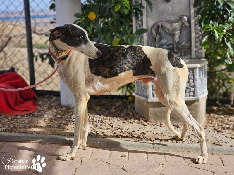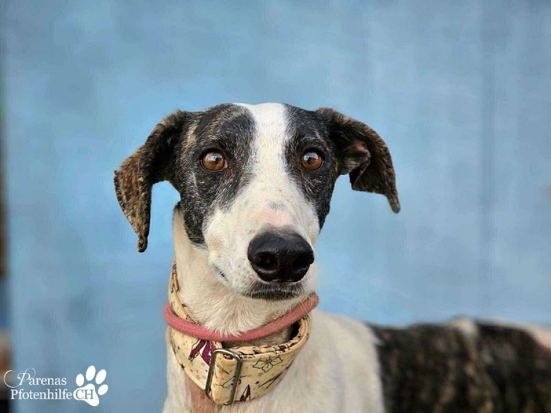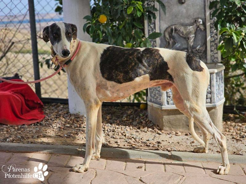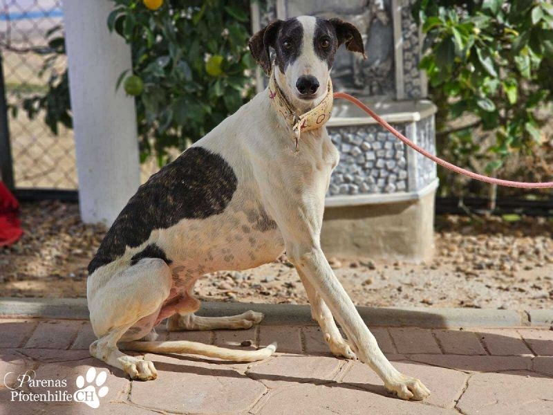 Jamals zukünftige Familie gewinnt einen Galgo, der schon optisch viel zu bieten hat. Mit seinem weißen Fell und den dunklen Flecken ist er auf jeden Fall ein echter Hingucker!