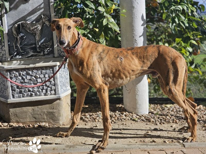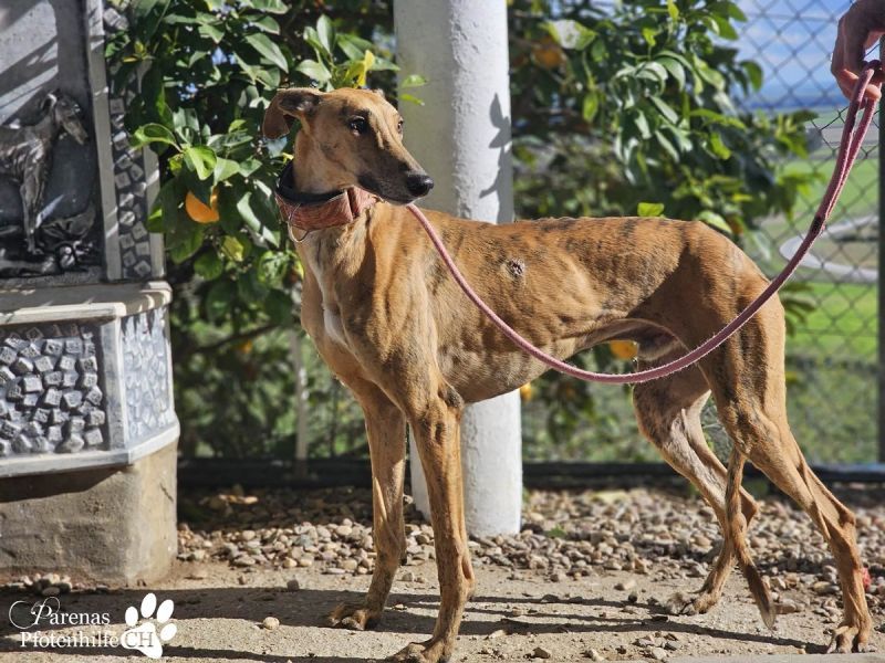 Lancelot ist ein sanfter Galgorüde, der mit seiner Art sofort Sympathie weckt. In der Hundegruppe bewegt er sich freundlich, ist sozial und meidet Konflikte. Gegenüber Menschen zeigt sich Lancelot anfangs vorsichtig und etwas zurückhaltend. Doch hinter dieser Schüchternheit steckt ein intelligenter und neugieriger Hund, der darauf wartet, Herzen zu erobern. Mit jedem Tag gewinnt er mehr Sicherheit, macht Fortschritte und kann die Nähe und das Streicheln durch das Team mittlerweile geniessen. Hat Lancelot erst Vertrauen gefasst, zeigt er sich zutraulich, freundlich und menschenbezogen. Seine stille Fröhlichkeit, kombiniert mit seiner sensiblen Art, macht ihn zu einem ganz besonderen Begleiter für Menschen, die ihm Zeit geben, um anzukommen.