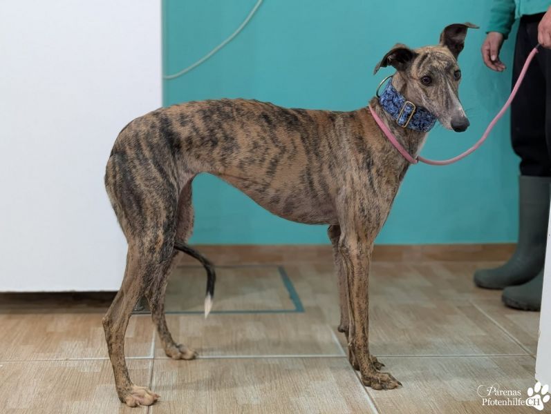 Loredana ist eine Galga, die man einfach ins Herz schliessen muss. Mit ihrer ruhigen, freundlichen Art begegnet sie der Welt offen und neugierig. Sie ist sehr menschenbezogen, sucht Nähe, liebt Streicheleinheiten und zeigt dabei eine wunderbar verschmuste Seite. Gleichzeitig ist sie verspielt und fröhlich, ohne dabei aufdringlich zu sein. Im Umgang mit anderen Hunden zeigt sich Loredana ausgesprochen sozial, gruppentauglich und meidet Konflikte. Ihre Intelligenz und Zutraulichkeit machen den Alltag mit ihr angenehm und unkompliziert. Genau diese ausgeglichene, liebevolle und neugierige Art macht sie zu einer idealen Begleiterin – auch für Menschen, die zum ersten Mal ihr Leben mit einer Galga teilen möchten. Mit Loredana zieht nicht nur ein Hund ein, sondern eine freundliche Seele, die Ruhe, Freude und ganz viel Herz mitbringt. Eine harmonische Mischung, die sofort berührt.