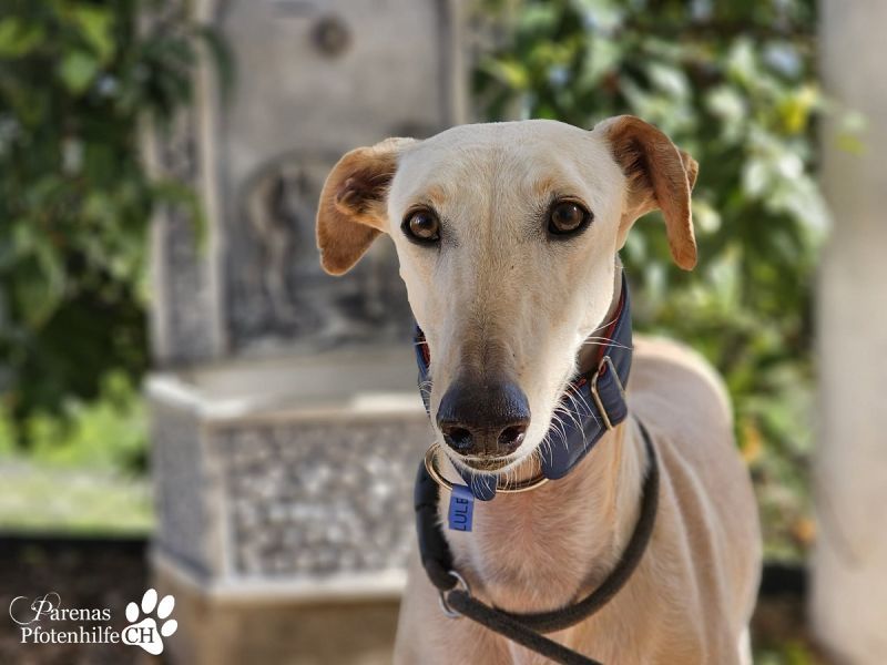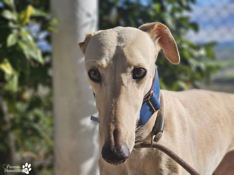 Lulea ist eine hübsche Galga mit cremefarbenem Fell. Anfangs unterwürfig und schüchtern, siegt bei ihr doch schnell die Neugier, sodass sie sich bald freundlich, verschmust und in Spiellaune zeigt. Die fröhliche Hündin wird ihr eigenes Zuhause, in dem auch andere Hunde und Katzen leben dürfen, ganz sicher mit Glück erfüllen. Kinder sollten schon etwas älter und verständiger im Umgang mit Lulea sein.