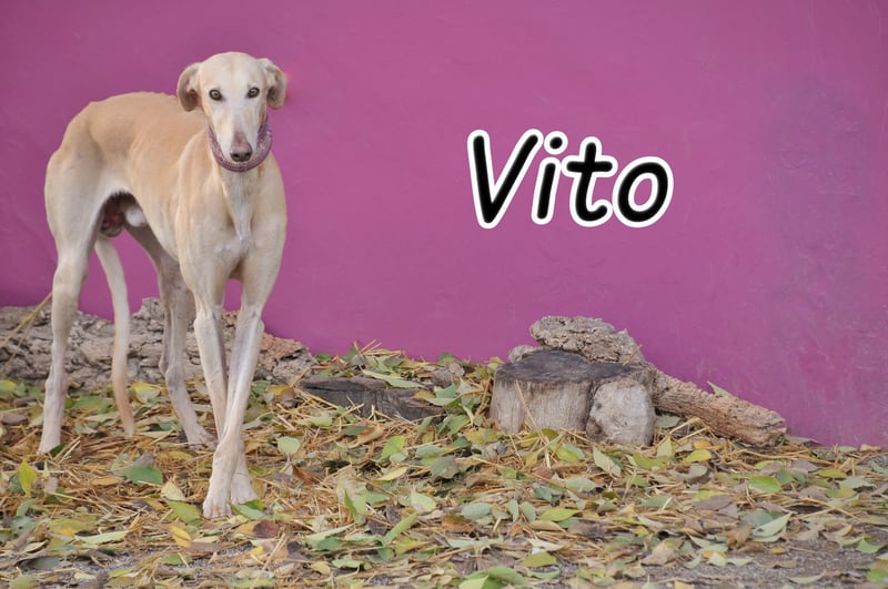 Trotz dieser Vergangenheit zeigt sich Vito als freundlicher, ruhiger und sehr sozialer Rüde. Er ist verträglich mit anderen Hunden und begegnet Menschen vorsichtig, aber offen. Seine Zurückhaltung ist keine Angst, sondern eher eine leise Höflichkeit – typisch Galgo: sensibel, sanft und unglaublich fein im Wesen.