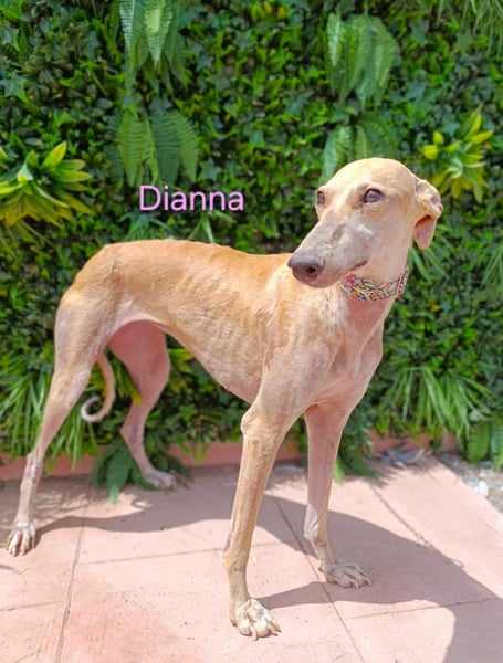 Die wunderschöne Dianna ist eine 2022 geborene Galga Española, die lange Zeit allein am Stadtrand von Córdoba überlebte. Ein mitfühlendes Paar brachte ihr regelmäßig Futter, doch sie ließ sich nicht fangen – erst mithilfe von Rescate Animal del Sur konnte sie schließlich in Sicherheit gebracht werden. Heute zeigt Dianna, wie viel Vertrauen und Liebe in ihr steckt. Sie ist eine freundliche, verschmuste und fröhliche Hündin, die schnell auftaut und sogar bei unbekannten Menschen Streicheleinheiten sucht. Dabei bleibt sie ruhig und ausgeglichen, ohne jemals aufdringlich zu sein. Mit anderen Hunden ist sie sozial, tolerant und liebevoll, egal ob aktiv oder ängstlich – Dianna kommt mit allen gut zurecht. Auch Katzen gegenüber zeigt sie sich freundlich. Sie läuft gut an der Leine und hat keinerlei Ängste im Alltag. Dianna wünscht sich ein Zuhause, in dem sie Liebe, Geborgenheit und Nähe erleben darf – gerne auch mit einem bereits vorhandenen Hund. Sie ist bereit für ihr neues Leben und wird ihre Familie mit Sanftmut und Zuneigung verzaubern.