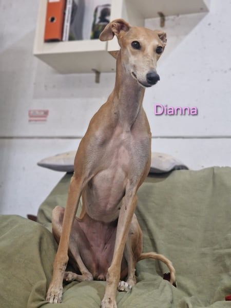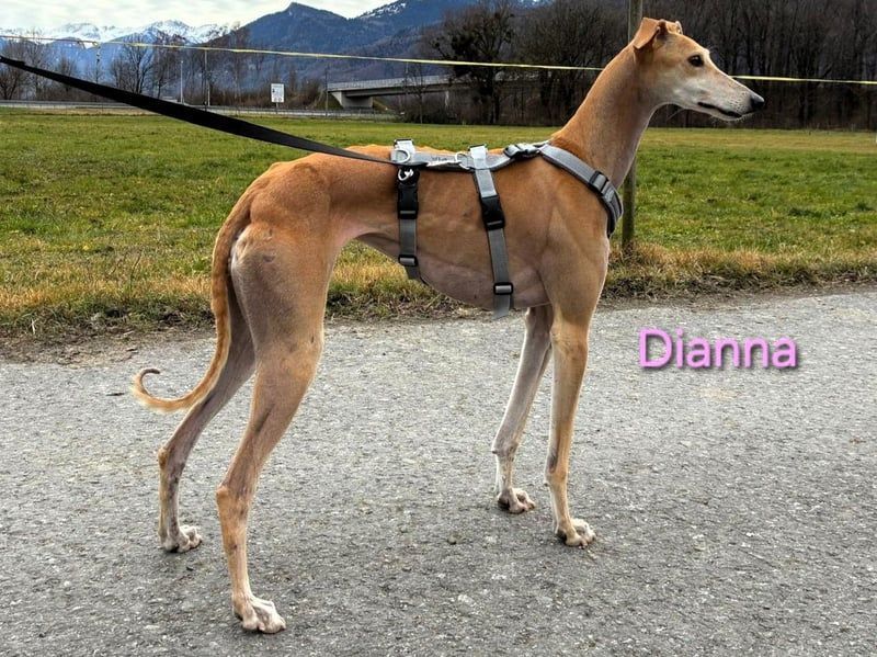 Dianna ist eine 3 Jahre alte Galgo-Hündin und lebt aktuell auf einer Pflegestelle, wo sie jeden Tag ein Stück mehr in ihrem neuen Leben ankommt. Sie ist sehr freundlich, offen gegenüber Menschen und sucht in dem Galgo-typischen Stil aktiv Kontakt. Auch Männern begegnet sie ohne Scheu. Im Alltag zeigt sich Dianna sensibel und aufmerksam. Sie ist dabei nicht ängstlich, sondern eher unsicher in einzelnen Situationen. Vermutlich hat sie früher gelernt, Herausforderungen lieber aus dem Weg zu gehen. Heute stellt sie sich ihnen. Man sieht deutlich, wie sie täglich mutiger wird. An der Leine läuft Dianna gut. In bestimmten Situationen, zum Beispiel bei vorbeifahrenden Autos, benötigt sie noch Unterstützung. Sie geht dabei nicht in die Flucht, sondern bleibt stehen und orientiert sich am Menschen. Mit ruhiger Begleitung meistert sie diese Momente. Das Autofahren bereitet Dianna keine Probleme. Gegenüber anderen Hunden verhält sie sich unterwürfig und freundlich. Ein vorhandener Zweithund ist möglich, aber keine Voraussetzung für ihr Glück. Für Dianna wünschen wir uns ein liebevolles, geduldiges Zuhause, das ihr Sicherheit gibt und Freude daran hat, ihre Entwicklung weiter zu begleiten. Sie bringt alles mit, um eine wunderbare Begleiterin zu werden. Man muss ihr nur die Chance geben.