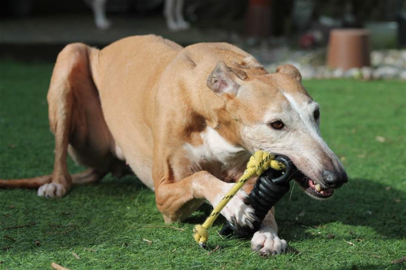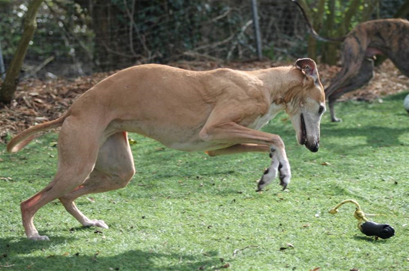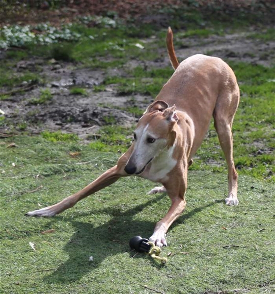 Mit anderen Hunden versteht sich Nerea sehr gut. Sie ist zu allen Hunden in der Pflegestelle sehr brav und sozial, sie hat zu Rüden und Hündinnen gleichermaßen gute Beziehungen. Mit ihrem dreibeinigen Kumpel Loqui flitzt sie gerne ein paar Runden durch den Garten. Ist Nerea nicht ausgelastet, kommt schon mal der kleine Welpe zum Vorschein und der ein oder andere Hausschuh wurde dabei umgestaltet. Kleine Toberunden auf dem Sofa sind, ganz zur Freude der Pflegestelle, Nereas große kleine Freude. Nerea genießt ebenso und ganz galgotypisch ruhige Kuschelstunden auf dem Sofa, liegt dann gerne alleine.