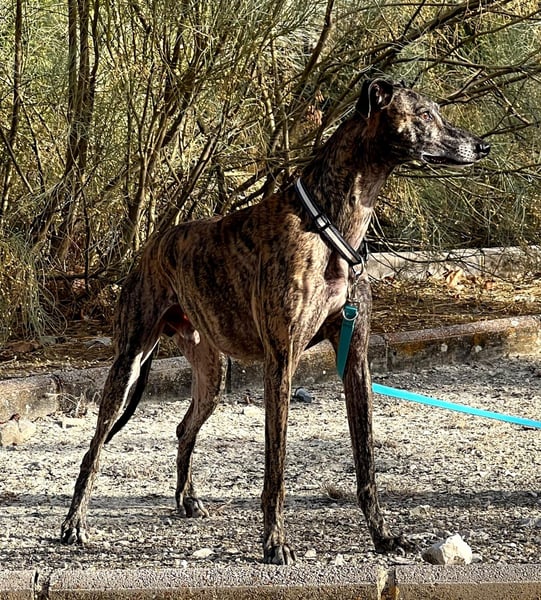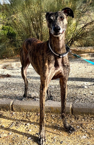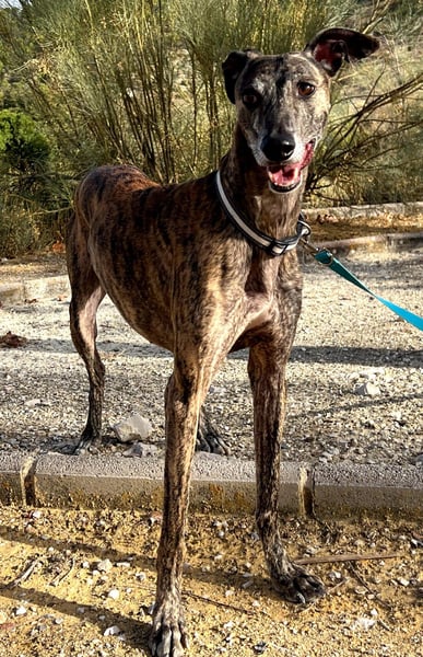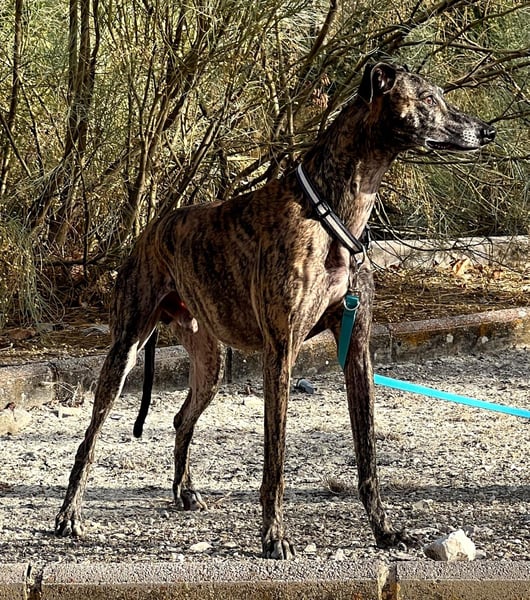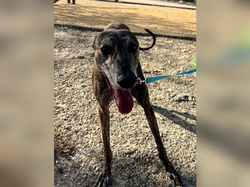 Golfo ist ein seltenes Exemplar für einen Galgo: Er kam im Tierheim an ohne jegliche Traumata. Golfo ist ein lebhafter und sehr intelligenter Hund. „Freude pur“ – so beschreiben ihn die Mitarbeiter im Tierheim. Er kommt super mit uns Menschen klar und genießt unsere Gesellschaft.