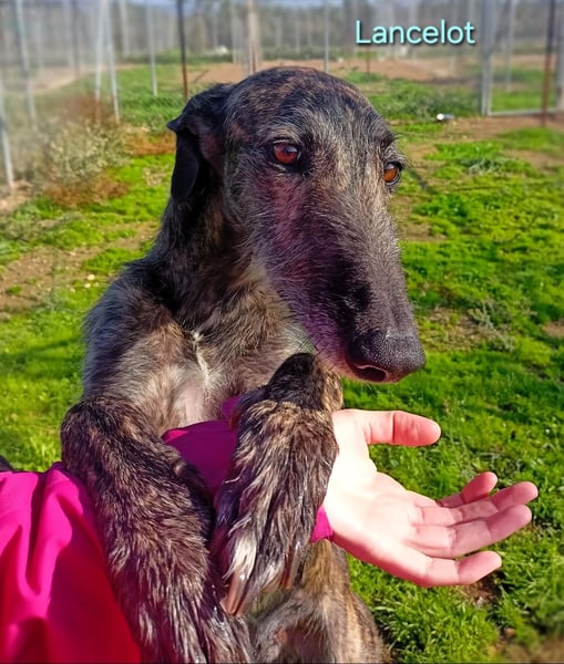 Anfangs war Lancelot noch unsicher und hielt Abstand zu Menschen. Doch innerhalb weniger Tage hat er sein Herz geöffnet. Heute begrüßt er jeden freudig, steht auf, wenn jemand seinen Zwinger betritt, und bittet sogar Fremde um Streicheleinheiten. Lancelot ist freundlich, sanft, anhänglich und verspielt. Mit anderen Hunden versteht er sich wunderbar ? er ist sozial, respektvoll und liebt Gesellschaft. Für Lancelot suchen wir ein Zuhause bei einfühlsamen, galgoerfahrenen Menschen, die ihm anfangs etwas Sicherheit geben. Wer ihm diese Chance schenkt, bekommt einen treuen, verschmusten und dankbaren Begleiter fürs Leben. Sein früherer Besitzer, ein Jäger, verstarb und Lancelot stand kurz davor, in der Perrera zu landen. Glücklicherweise durfte er in unser Tierheim ziehen, wo er schnell gezeigt hat, wie liebevoll und lebensfroh er eigentlich ist.