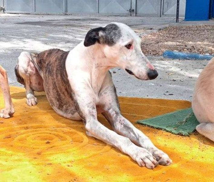 Lion durfte zusammen mit seinem Sohn Nico und noch weiteren Galgos ein großes Tierheim in Spanien verlassen, um nun in der Protectora von Burgos die Chance auf ein neues Leben zu bekommen
