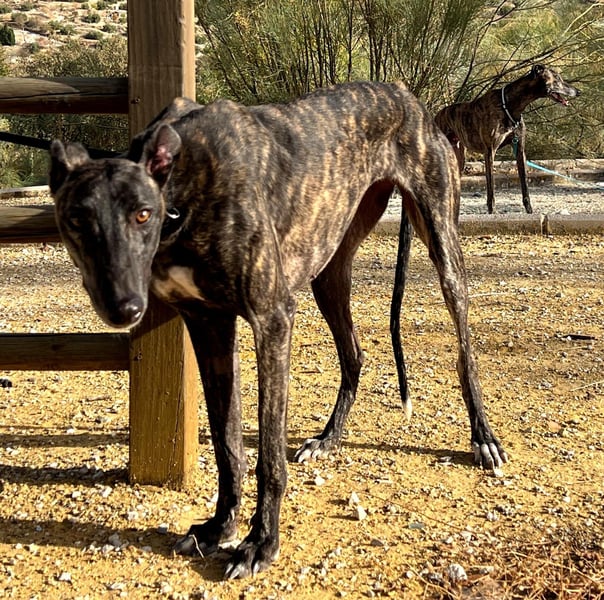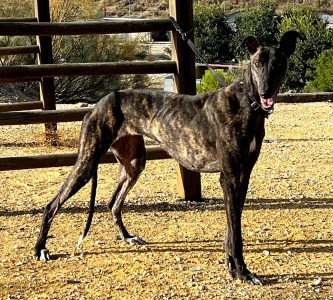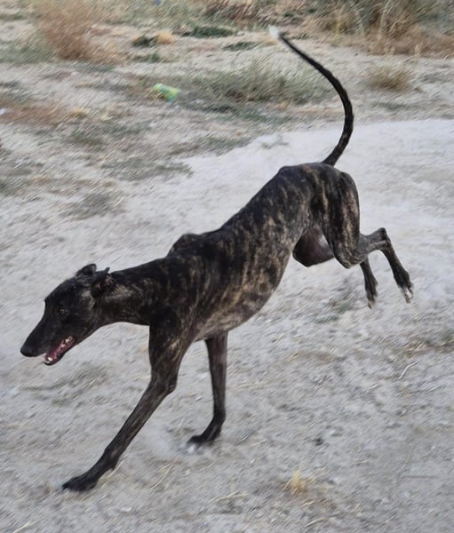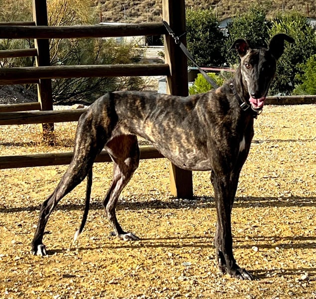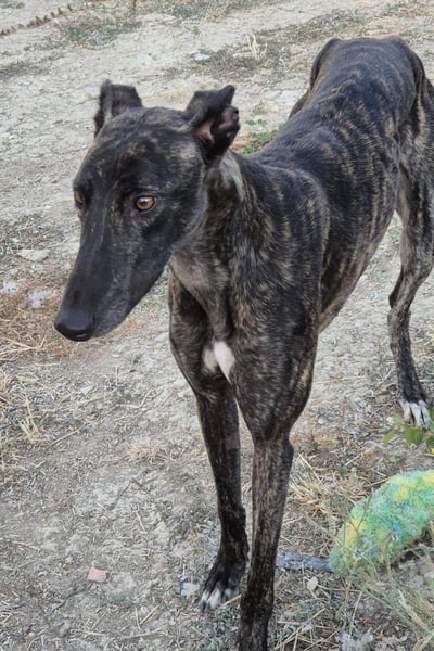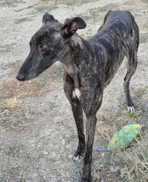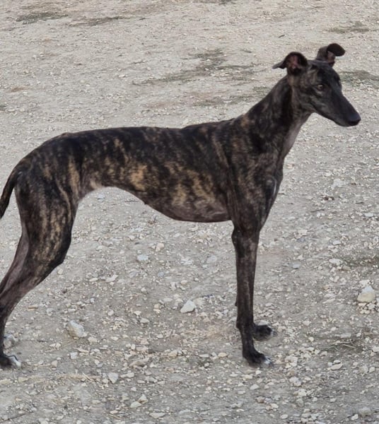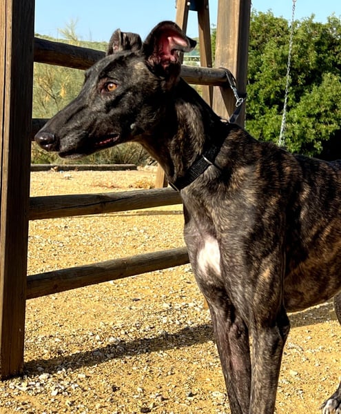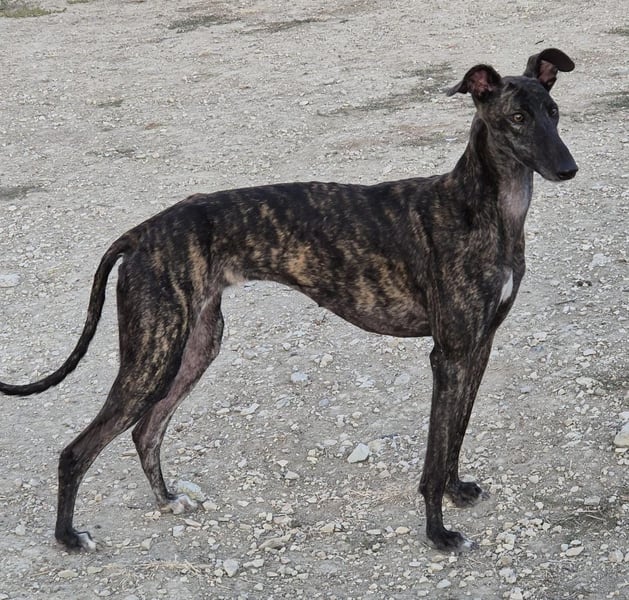 Candela ist eine wunderschöne, gestromte Galga-Dame, geboren im Januar 2023. Mit ihren eleganten 69 cm Schulterhöhe, 58 cm Körperlänge und einem zarten Halsumfang von 36 cm sowie Brustumfang von 71 cm bringt sie alles mit, was Windhundfreunde lieben. Aktuell wiegt sie 27 kg und ist kastriert.