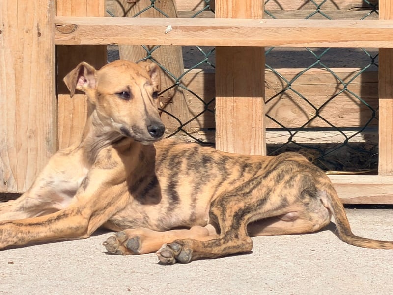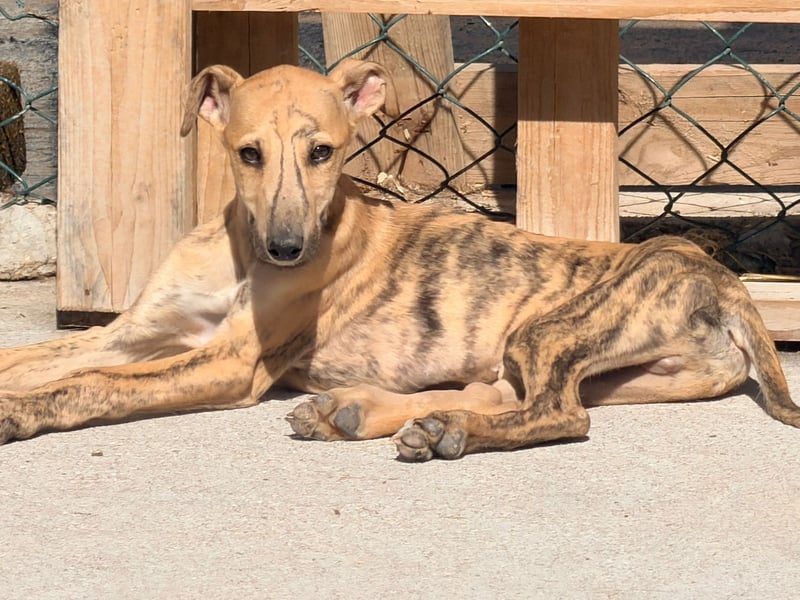 Alvaro ist ein junger Galgo Español Rüde, geboren vermutlich im November 2025. Er ist geimpft, gechipt und befindet sich derzeit in Tordesillas bei Bea in Spanien. Da er noch wächst, wird er eine Schulterhöhe von etwa 60+ Zentimetern und ein Gewicht von rund 25 + Kilogramm erreichen. Ein Test auf Mittelmeerkrankheiten ist erst ab einem Alter von sechs Monaten möglich.