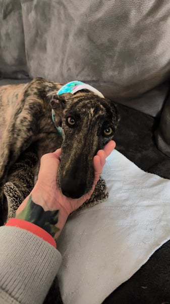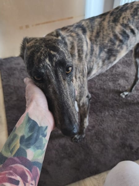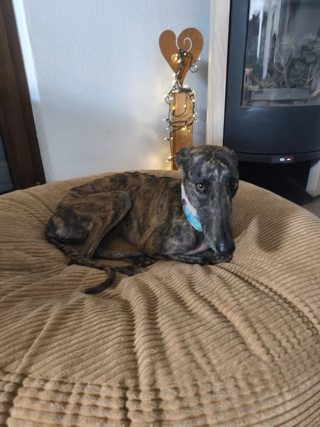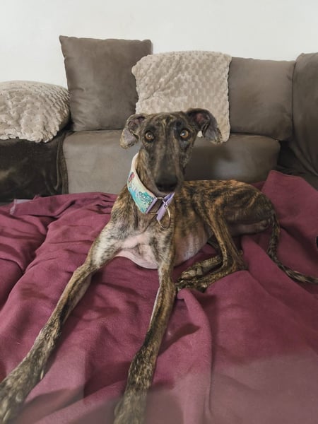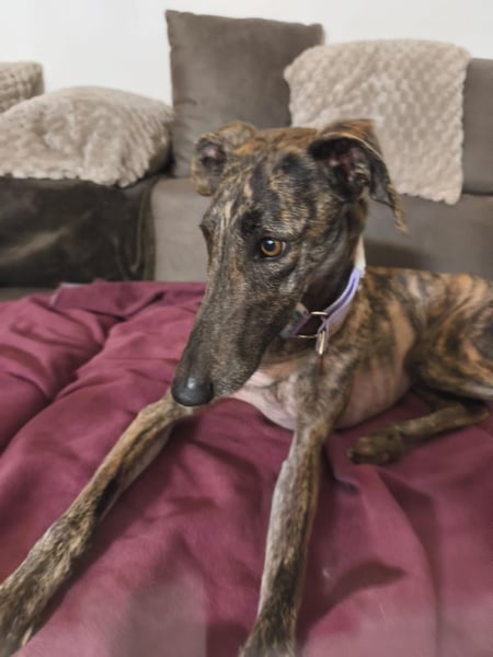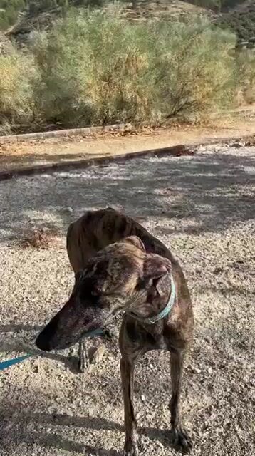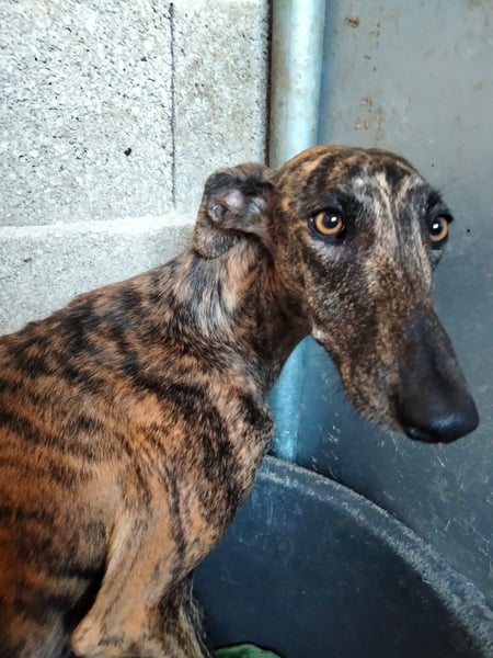 Auf ihrer Pflegestelle in 84568 Pleiskirchen ist Pastora gut angekommen und beginnt langsam, in ihrem neuen Alltag Fuß zu fassen. Die junge, gestromte Galgo-Hündin wurde im März 2024 geboren und bringt mit ihrer eleganten Erscheinung – 55 cm Länge, 63 cm Schulterhöhe und derzeit 21 kg – all die Anmut und Feinheit mit, die man an dieser Rasse so schätzt.