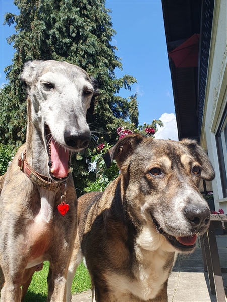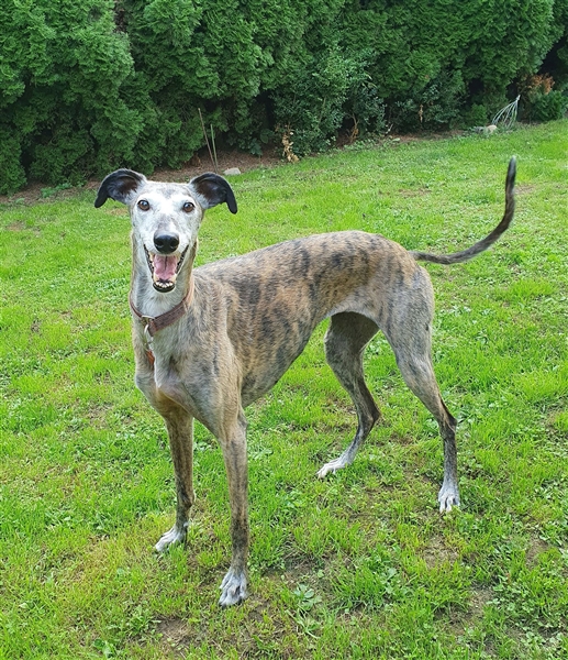 MARIANA, Galga ca. 8 Jahre alt, 62-63 cm Schulterhöhe, 18 kg, kastriert, stubenrein, leinenführig, geimpft, gechipt und gesundheitlich topfit und absolut katzenverträglich
