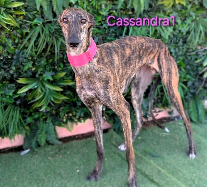 Cassandra1 ist eine wunderschöne, edle Galga mit einem sanften Herzen. Sie gehört zu den stillen, vorsichtigen Seelen, die etwas Zeit brauchen, um Vertrauen zu fassen und sich in neuen Situationen sicher zu fühlen. Veränderungen verunsichern sie anfangs, doch sie reagiert nie panisch ? sie zieht sich lieber leise zurück, legt sich auf ihr Bett und beobachtet in Ruhe, bis sie sich wieder wohlfühlt. In ihrem vertrauten Umfeld zeigt Cassandra1 ihre wahre Schönheit: eine ruhige, liebevolle und äußerst sanftmütige Hündin. Mit anderen Hunden versteht sie sich wunderbar ? sie ist anhänglich, unterwürfig und lässt sich selbst von temperamentvolleren Spielkameraden nicht aus der Ruhe bringen. Ihr freundliches Wesen macht sie zu einer angenehmen Begleiterin für jedes Rudel. Für Cassandra1 wünschen wir uns eine geduldige Familie, die Erfahrung im Umgang mit schüchternen Galgos hat. Ein souveräner, sozialer Hund im Zuhause wäre ideal, da er ihr Sicherheit geben und ihr helfen kann, Vertrauen zu gewinnen. Cassandra1 wird sich in einem ruhigen, liebevollen Zuhause mit Einfühlungsvermögen zu einer treuen Gefährtin entwickeln ? sie braucht nur Menschen, die ihr Zeit und Verständnis schenken, damit sie in ihrem eigenen Tempo aufblühen kann.