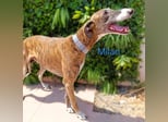 Er hat keinerlei Angst, auch nicht vor fremden Menschen. Er ist sehr, sehr anhänglich und sanft. Er braucht nur ein wenig Zeit, um sich vollständig einzugewöhnen, und fühlt sich sicherer, wenn andere Hunde in seiner Nähe sind. Mit anderen Hunden ist er sehr gut verträglich: sozial, unterwürfig, nicht dominant. Er ist ein unkomplizierter Hund, der sich mit wenig Aufwand an nahezu jede Familie anpassen kann. Ein weiterer Hund im Zuhause wäre ideal, um ihm die Eingewöhnung zu erleichtern und mögliche Trennungsangst zu vermeiden. Wir glauben jedoch, dass er – bei entsprechender Anleitung – auch als Einzelhund zurechtkommen könnte. Milan läuft gut an der Leine und wiegt 30kg.