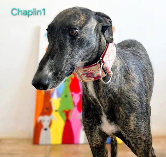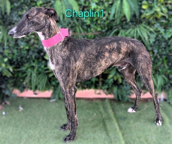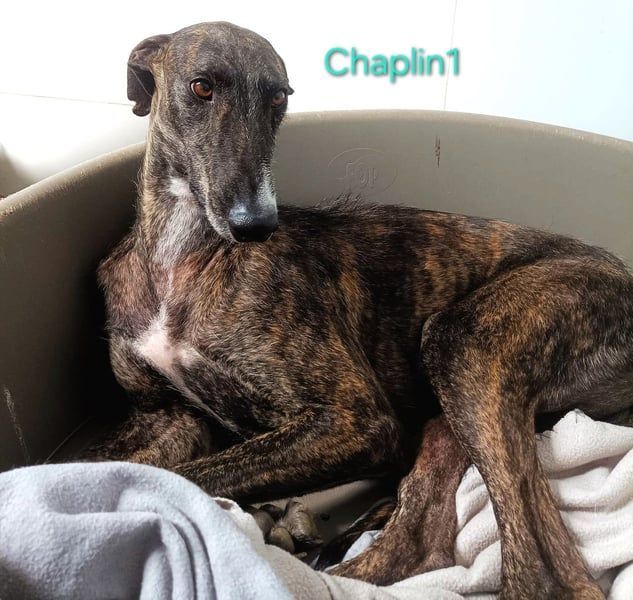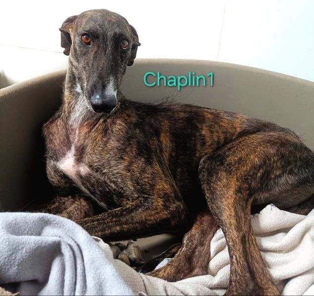 Chaplin1 wurde abgegeben von einem Tierschutzverein aus Murcia. Chaplin1 ist ein wunderschöner Galgo mit sehr edlem, ruhigem und anhänglichem Wesen. Er ist unsicher im Umgang mit fremden Menschen – nicht panisch, aber schüchtern. Er zeigt sich dann nicht fröhlich, sondern bleibt lieber in seinem Bett liegen oder beobachtet aus der Entfernung, wenn jemand Fremdes seinen Zwinger betritt.