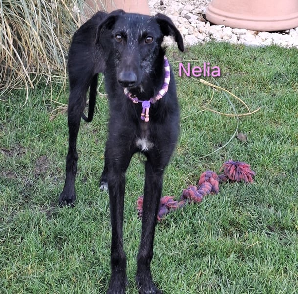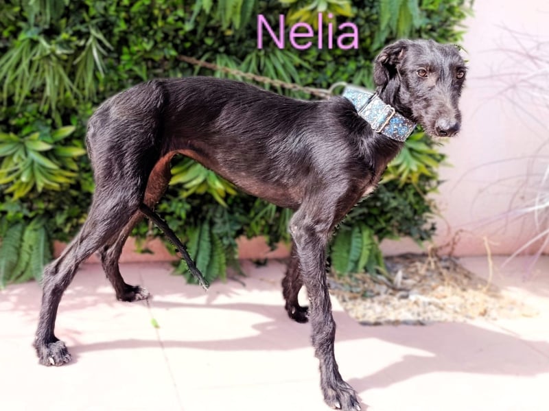 Nelia ist eine sehr aktive, verspielte und neugierige Galga. Altersgerecht bringt sie viel Energie mit und ist entsprechend bewegungsfreudig. Regelmäßiger Freilauf in einem ausbruchsicherem Areal oder Garten ist für sie unbedingt erforderlich. Ein souveräner Zweithund ist für Nelia sehr wichtig, da sie sich stark an Artgenossen orientiert und daraus Sicherheit gewinnt. Alleinbleiben kann sie aktuell noch nicht. Ihre zukünftigen Menschen sollten daher ausreichend Zeit, Geduld und Verständnis für diesen Trainingsbedarf mitbringen. Auch an der Stubenreinheit muss derzeit noch gearbeitet werden. Nelia ist eine fröhliche, lustige Hündin mit viel Temperament, die altersentsprechend noch viel bunte Knete im Kopf hat und die aufregende Menschenwelt ersteinmal kennenlernen muss. Katzen kennt sie bislang nicht. In vertrauter Umgebung zeigt sie sich sehr anhänglich gegenüber ihren Artgenossen und lernt schnell.