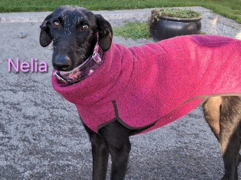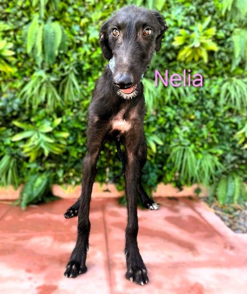 Nelia ist eine sehr aktive, verspielte und neugierige Galga. Altersgerecht bringt sie viel Energie mit und ist entsprechend bewegungsfreudig. Regelmäßiger Freilauf in einem ausbruchsicherem Areal oder Garten ist für sie unbedingt erforderlich. Ein souveräner Zweithund ist für Nelia sehr wichtig, da sie sich stark an Artgenossen orientiert und daraus Sicherheit gewinnt. Alleinbleiben kann sie aktuell noch nicht. Ihre zukünftigen Menschen sollten daher ausreichend Zeit, Geduld und Verständnis für diesen Trainingsbedarf mitbringen. Auch an der Stubenreinheit muss derzeit noch gearbeitet werden. Nelia ist eine fröhliche, lustige Hündin mit viel Temperament, die altersentsprechend noch viel bunte Knete im Kopf hat und die aufregende Menschenwelt ersteinmal kennenlernen muss. Katzen kennt sie bislang nicht. In vertrauter Umgebung zeigt sie sich sehr anhänglich gegenüber ihren Artgenossen und lernt schnell.