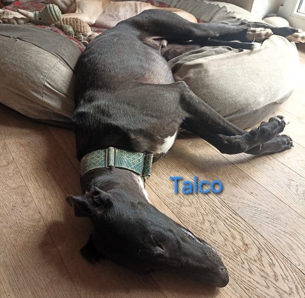 Talco ist ein sehr entspannter, sehr ruhiger Galgo, der an einem sehr frühen morgen auf einem Parkplatz gefunden wurde. Der Mann einer Helferin war zufällig da, weil seine ältere Hündin öfter nachts raus muss und da stand Talco. Talco ist wie selbstverständlich mit dem Rudel nach Hause gelaufen und lebt nun im Shelter, wo er auf seine neue Familie wartet.