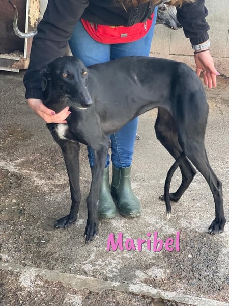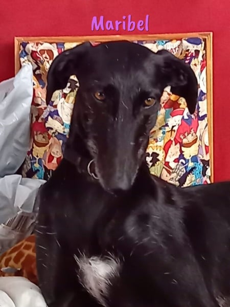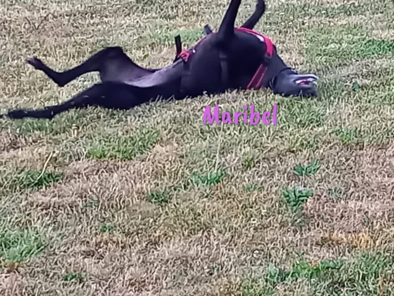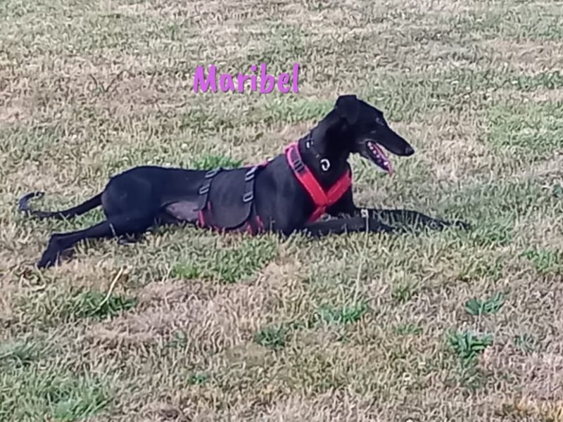 Maribel versteht sich bestens mit unserem Kater, den Pferden und natürlich den Galgos, die sie hier kennen gelernt hat ? vor anderen Rassen hat sie Respekt und versteckt sich sofort hinter mir. Trotz ihrer temperamentvollen Art zu spielen, lässt sie sich von den älteren meist beeindrucken und nervt diese nicht endlos.