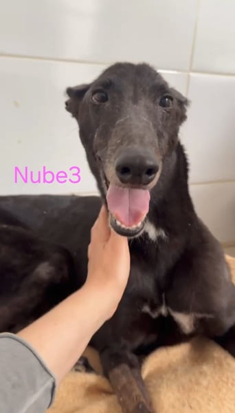 Nube3 ist eine wunderschöne Galga, die wir in einem gesundheitlich sehr schlechten Zustand übernommen haben. Sie wurde mithilfe einer Lebendfalle gesichert – ein Umstand, der erahnen lässt, wie lange sie auf sich allein gestellt gewesen sein muss. Als sie zu uns kam, war sie stark abgemagert, übersät mit Zecken, mit viel zu langen Krallen, schuppiger Haut, Entzündungen und alten Verletzungen. Ihr Körper war erschöpft, ihr Zustand insgesamt sehr besorgniserregend.