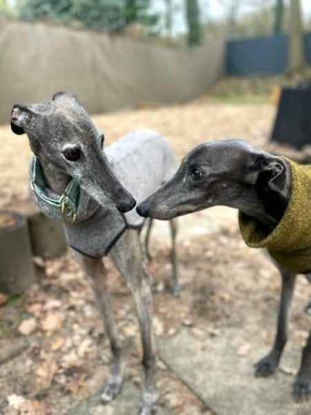 Itelo lebt derzeit in einer Windhundgruppe, in welche er sich zügig integriert hat. Er kommt mit allen Hunden gut zurecht und genießt es, mit ihnen beisammen zu liegen.