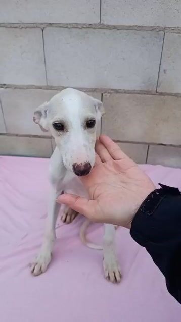 Belén ist eine wunderschöne, helle cremefarbene Galgo-Hündin .