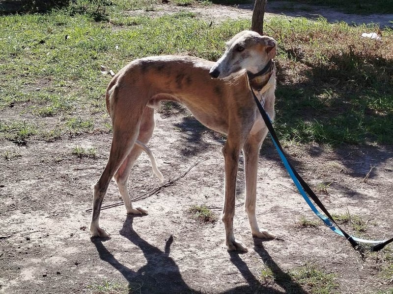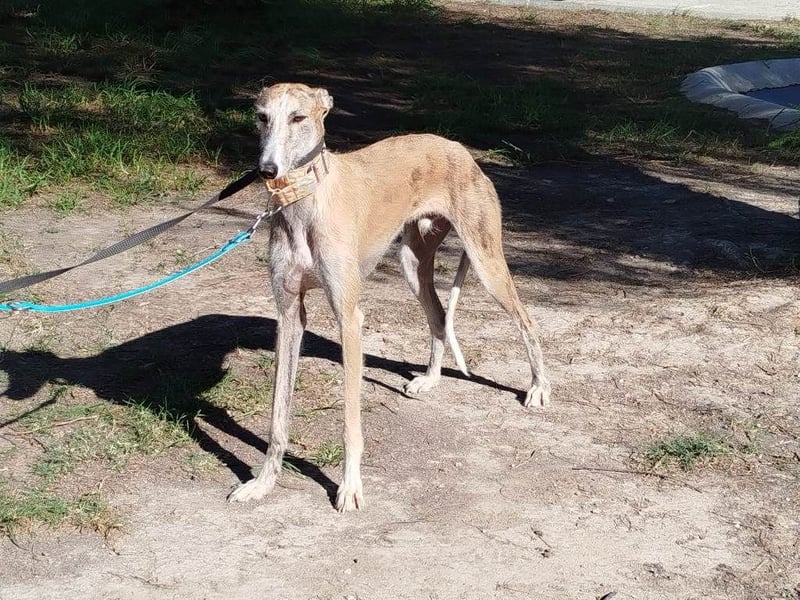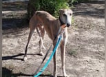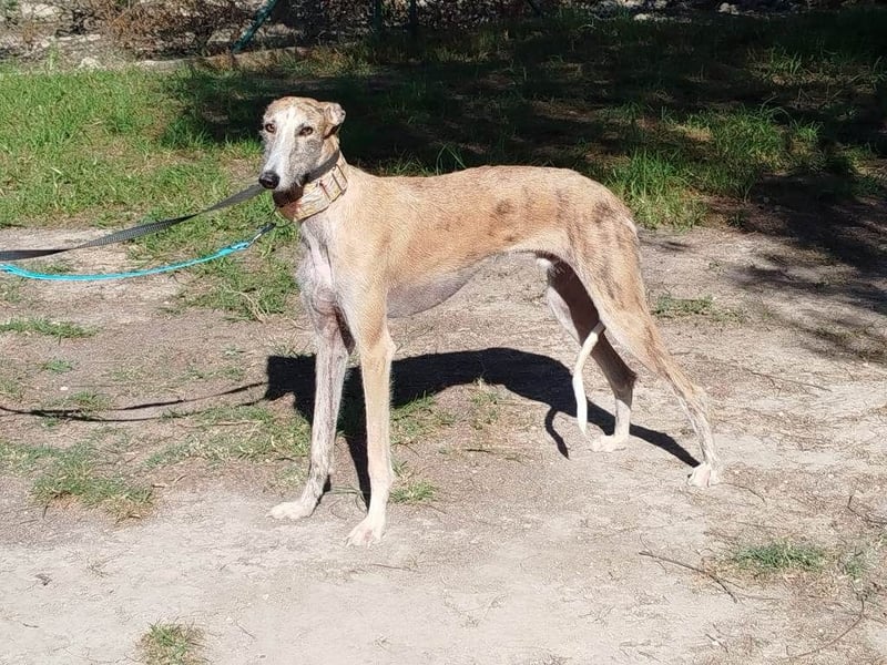 Faraon kam mit einem anderen Galgo ins Tierheim. Er ist zwar etwas ängstlich, aber gutmütig. Er läuft bereits an der Leine und ist den Tierschützern gegenüber zutraulicher geworden. Er versteht sich gut mit anderen Hunden.