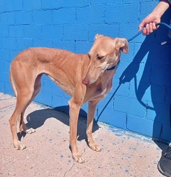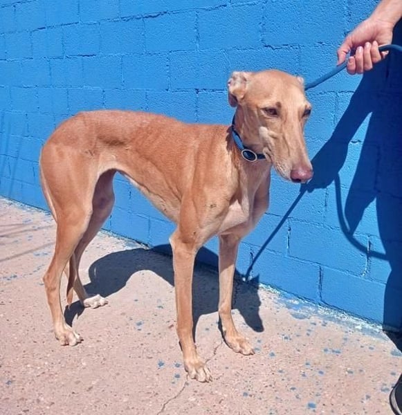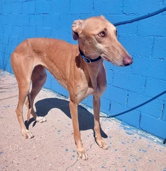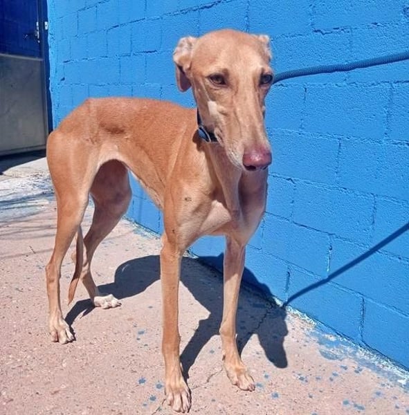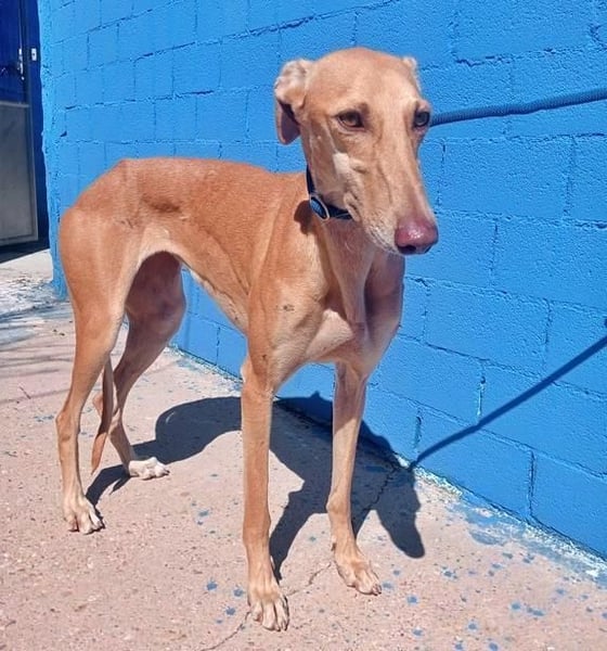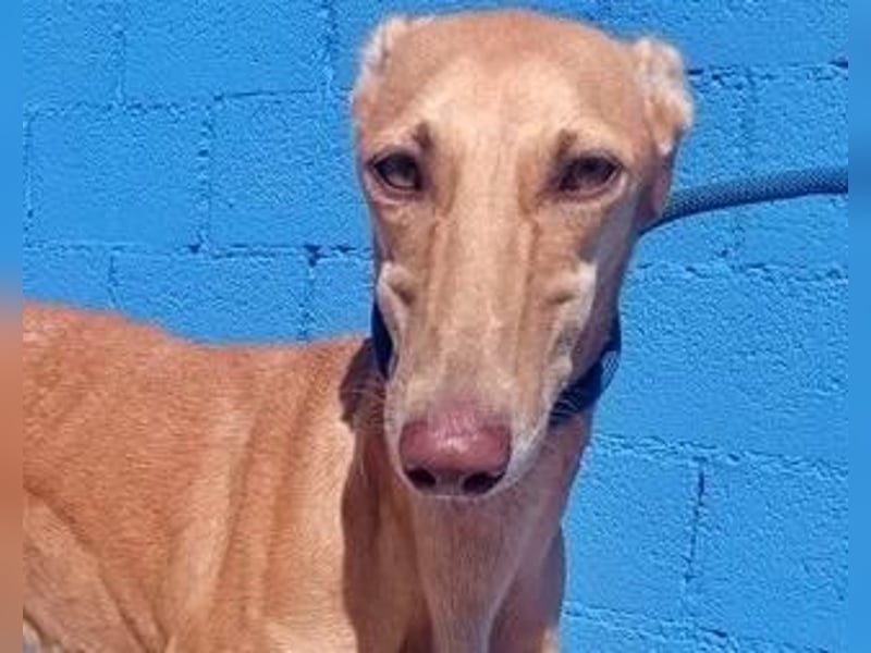 Diese elegante Langnase durfte zusammen mit weiteren Windhunden ein großes spanisches Tierheim verlassen, um nun in die Protectora von Burgos umzusiedeln. Aufgrund ihrer schönen honigfarbenen Augen wurde sie auf den Namen Miel getauft.