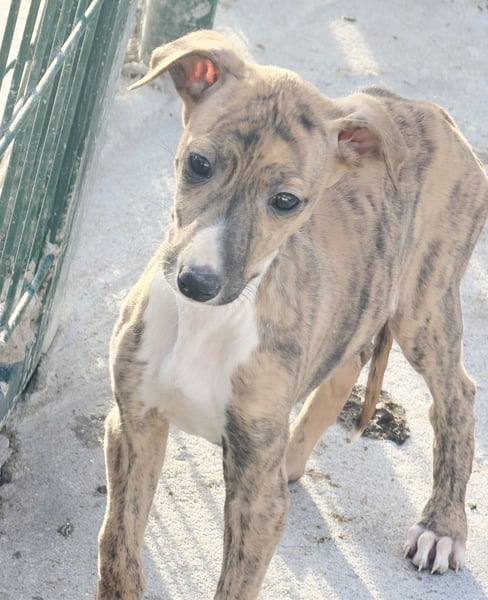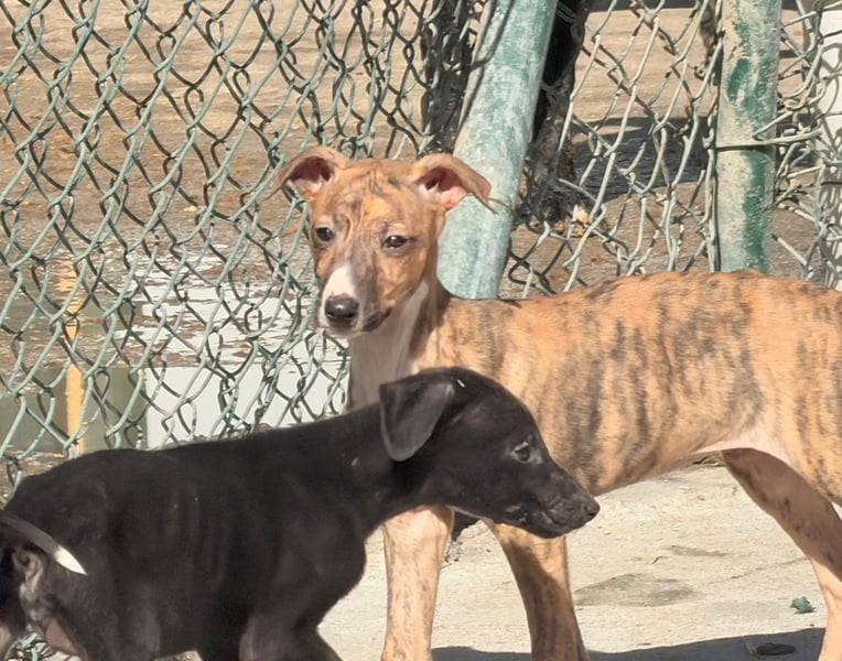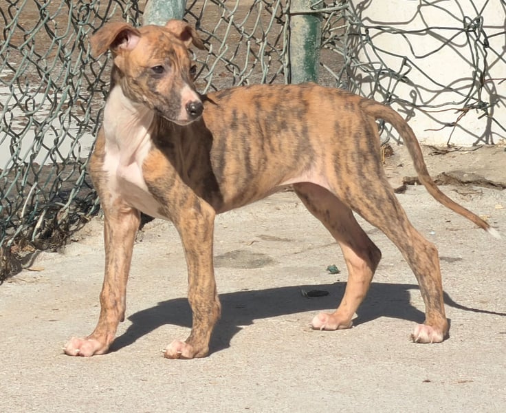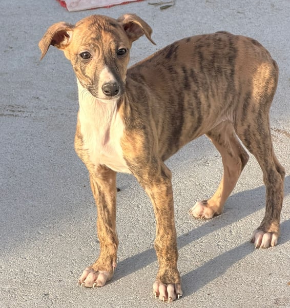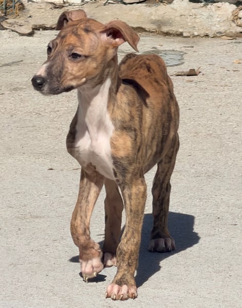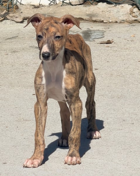 River ist eine junge Galgo Español Hündin, geboren vermutlich im Dezember 2025. Sie wurde gemeinsam mit ihren Geschwistern von einem Jäger abgegeben. Nun möchte sie zum ersten Mal erfahren, wie sich ein liebevolles und sicheres Zuhause anfühlt. Sie ist geimpft, gechipt und befindet sich derzeit in Tordesillas bei Bea in Spanien. Da sie noch wächst, wird sie eine Schulterhöhe von etwa 60 Zentimetern und ein Gewicht von rund 20 bis 25 Kilogramm erreichen. Ein Test auf Mittelmeerkrankheiten ist erst ab einem Alter von sechs Monaten möglich.