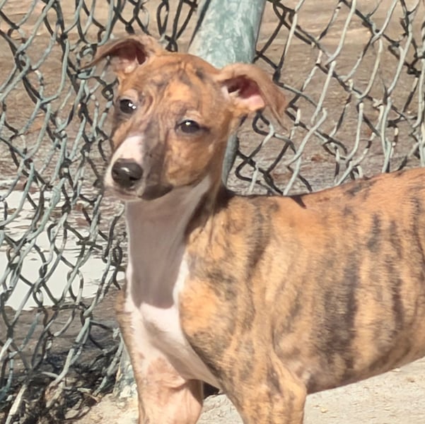 Schon auf den ersten Blick fällt River durch ihre wunderschönen, wachen Augen und ihr zart gestromtes Fell auf. Sie nimmt die Welt noch vorsichtig wahr und beobachtet alles mit feiner Aufmerksamkeit. Wie viele Galgos besitzt sie ein sensibles, sanftes Wesen und braucht Menschen, die ihr mit Ruhe, Freundlichkeit und Verständnis begegnen.
