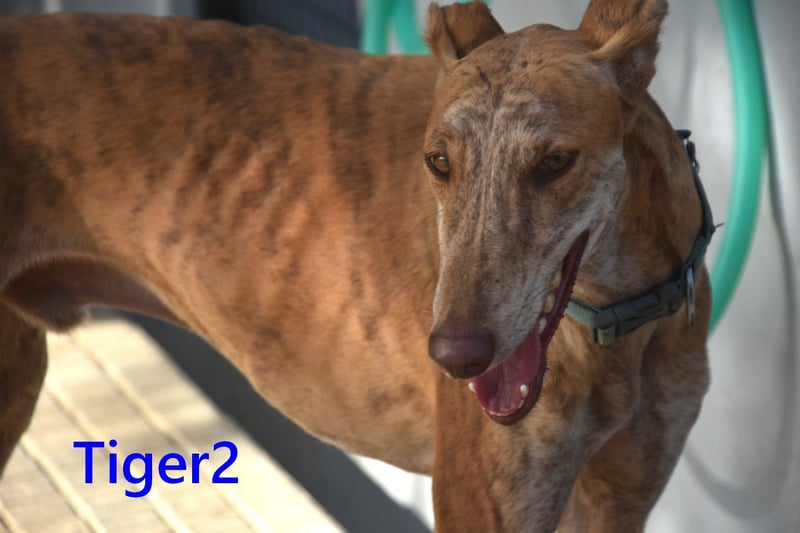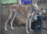 Tiger2 wurde gemeinsam mit Alma gesichtet. Alma konnte schnell gerettet werden. Tiger2 war sehr vorsichtig und nach der Rettung von Alma erst mal 14 Tage verschwunden. Als er dann wieder auftauchte, konnte auch er in Sicherheit gebracht werden. Er war sehr glücklich, als er wieder auf Alma getroffen ist. Als diese dann vermittelt wurde, hat er sich Petra als Freundin ausgesucht. Aber auch sie ist inzwischen vermittelt. Tiger2 hatte jetzt Zeit, um sich an Menschen zu gewöhnen und zu lernen, dass es auch gute Menschen gibt. Er hat es mehr als verdient, endlich auch eine Familie zu finden. Wichtig wäre es, wenn es schon eine Galga im neuen Zuhause gibt. Sie würde ihm helfen, schneller Vertrauen zu finden.