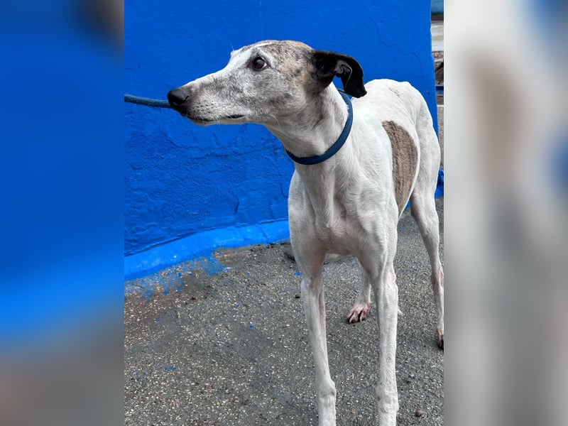 Penélope ist eine Galgo Español Hündin, geboren am 27. Mai 2019 und etwa 57 cm groß. Sie lebt derzeit in Burgos in Spanien und sucht dringend eine Pflegestelle oder ihr endgültiges Zuhause. Ihr Besitzer hat sie abgegeben, nachdem sie ihr ganzes Leben lang für die Jagd genutzt wurde. Nun ist die Zeit gekommen, in der sie endlich zur Ruhe kommen darf.