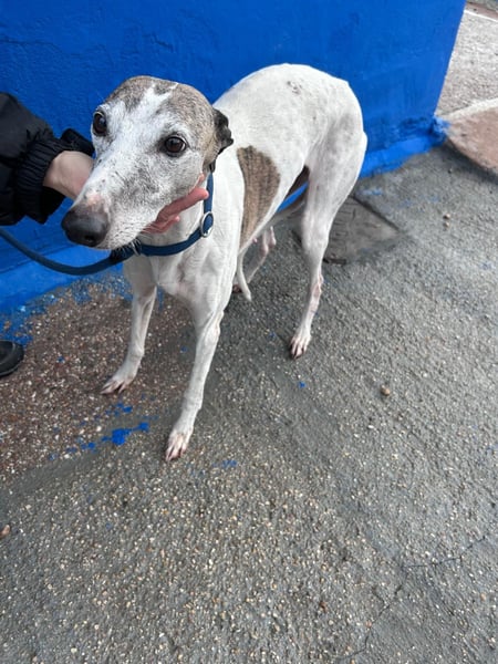 Man sieht ihr die vergangenen Jahre an. Ihr Gesicht ist grau geworden, ihr Körper wirkt müde und gezeichnet. Doch hinter diesem sanften, etwas erschöpften Blick verbirgt sich eine sehr gutmütige und liebevolle Hündin. Penélope versteht sich problemlos mit Rüden und Hündinnen, sie ist freundlich, ruhig und dankbar für jede Zuwendung. Sie wünscht sich nichts mehr als ein stilles Plätzchen, an dem sie ankommen und ohne Erwartungen einfach da sein darf.