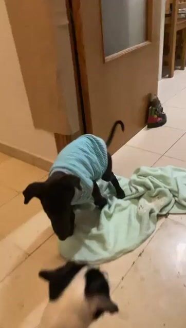 Gerade mal 8 Wochen alt irrte der kleine Blacky humpelnd und mutterseelenallein durch die Straßen. Zum Glück wurde er von lieben Menschen gefunden, die ihn ins Tierheim Asoka brachten. Sicher wurde der kleine Bub von seinem Galguero zum Sterben entsorgt. Wie viel Angst und Schmerzen müssen das kleine Seelchen begleitet haben....