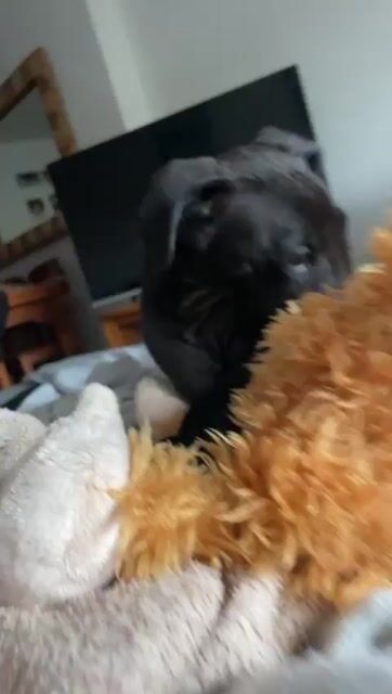 Jetzt darf er sich erst einmal auf seiner liebevollen Pflegestelle erholen und Welpen typisch spielen und sein so frühes Leid vergessen.