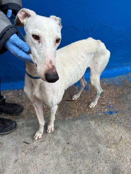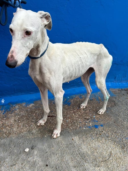 Cereza wurde von ihrem Besitzer abgegeben. Ihr Körper trägt die stillen Spuren eines traurigen Lebens, doch ihr Wesen ist freundlich, ruhig und zutiefst berührend. Sie ist eine sensible Galga, die die Nähe des Menschen sucht und jede liebevolle Zuwendung dankbar annimmt. Gerade Hunde wie sie zeigen oft eine besondere Tiefe und Verbundenheit, sobald sie Vertrauen fassen dürfen.