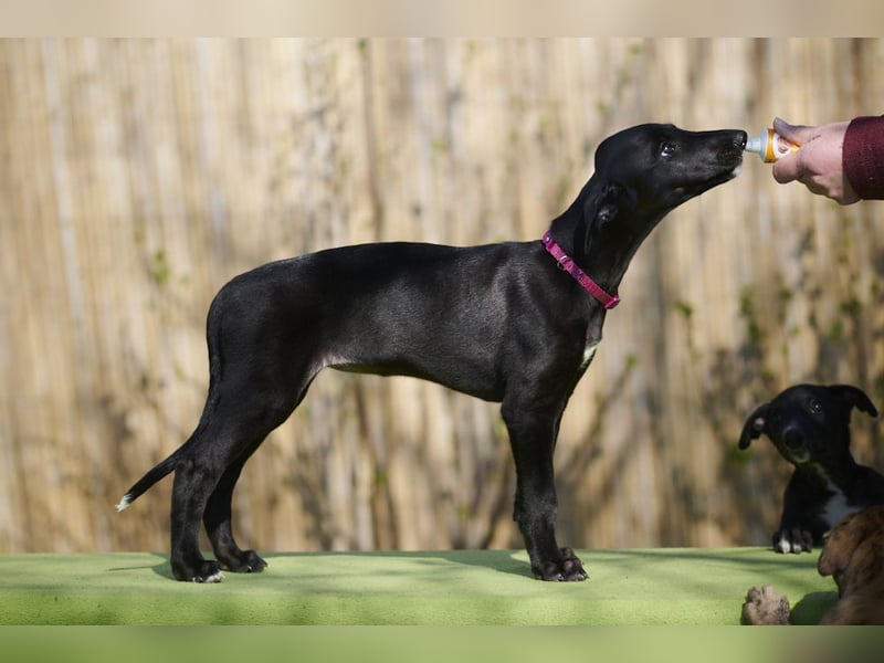 Dulcinea ist optisch ein Ebenbild ihrer Mama Benissa, bringt aber ein wenig mehr Temperament mit. Aufgeschlossen und unerschrocken geht sie durchs Leben findet sicherlich Spaß im Windhundsport
