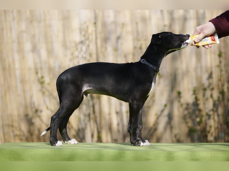 Dulcinea ist optisch ein Ebenbild ihrer Mama Benissa, bringt aber ein wenig mehr Temperament mit. Aufgeschlossen und unerschrocken geht sie durchs Leben findet sicherlich Spaß im Windhundsport