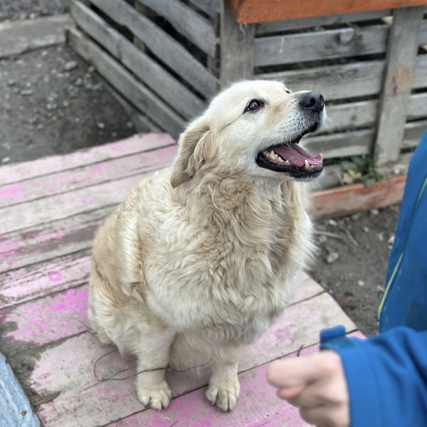 Marta ist ein Mädchen, laut Tierarztschätzung ca. 6 Jahre alt (geb. 01.01.2020), etwa 30 kg schwer und ca. 53 cm groß. Sie ist ein Golden Retriever (Mischling). Sie hat nur einen halben Schwanz, wir wissen nicht ob sie so zur Welt kam oder ob soe es durch ein Unglück verloren hat.