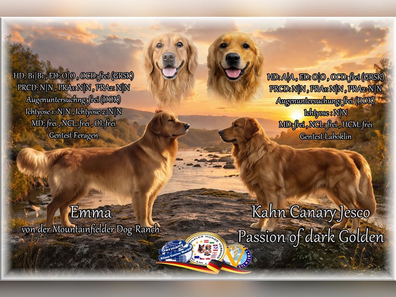 Eltern: Gen-Tests und Röntgenuntersuchungen (GRSK) wurden durchgeführt und können Vorort eingesehen werden