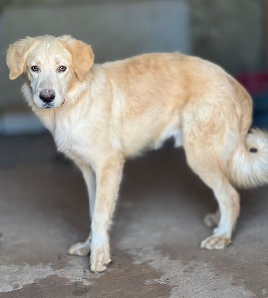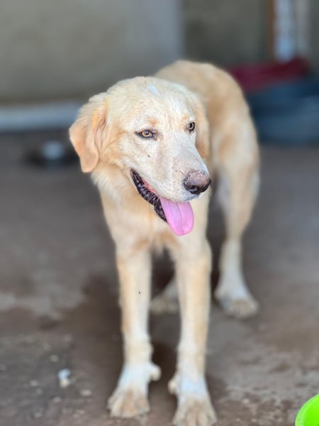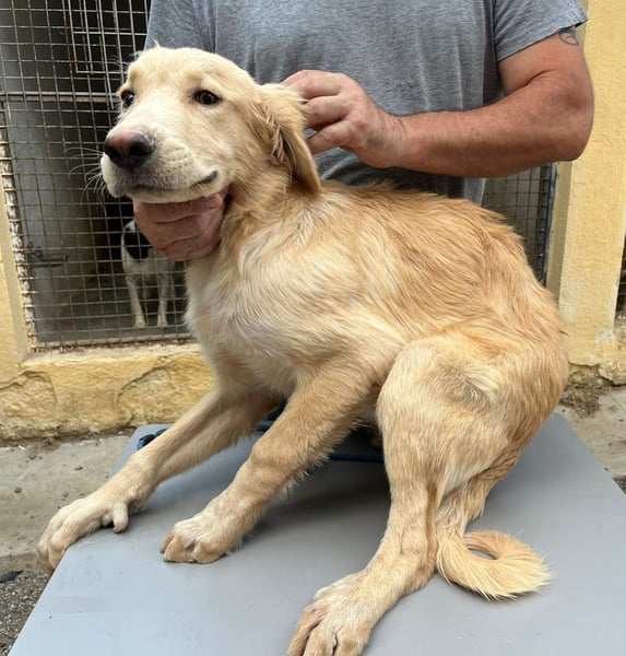 Tofu, vermutlich ein junger Golden Retriever-Mix Rüde, wurde nach Angaben der Perrera ausgesetzt in einem Industriegebiet aufgefunden und in die Perrera ResurJA in Linares gebracht. Wir haben Tofu aus der Perrera geholt und ins Refugio nach Südspanien gebracht.