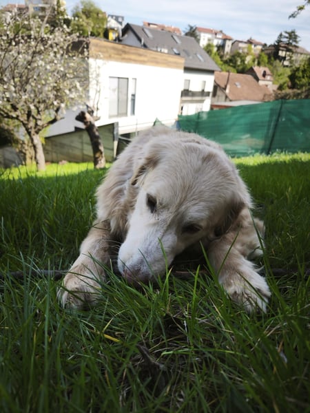 Raffi ist ein bald 4-jähriger Golden Retrieverrüde mit einer Schulterhöhe von circa 65 cm und einem Gewicht von 34 Kilo. Raffi hat schon viel gelernt auf seiner Pflegestelle und ist gut in Hundebegegnungen, an der Leine, im Alleinebleiben, fährt im Auto mit, ist stubenrein, kann Treppen steigen und ist sowieso gut verträglich mit seinen Artgenossen. Wenn Raffi Vertrauen zu seinen Menschen hat steht Bürsten und ein Besuch beim Tierarzt nichts im Wege. Dieses Vertrauen müssen neue Menschen aber erst aufbauen. Wenn Raffi sich eingelebt hat ist er ein fröhlicher, aufgeweckter Hund, der es liebt sich an seinen Menschen zu binden. Raffi ist kastriert, gechipt, geimpft und besitzt einen EU-Heimtierausweiß. Wir wünschen uns für Raffi gerne schon etwas Hundeerfahrene Menschen, die dem Rüden anfangs Sicherheit geben können. Kinder sollten schon im Teenageralter sein. Mit Raffi bekommt man einen tollen Begleiter an die Seite, der anfangs einfach etwas Zeit braucht. Für mehr Informationen melden Sie sich gerne bei uns.