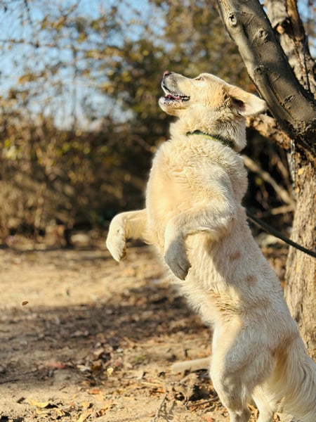 An der Leine zieht er manchmal noch ein bisschen, aber das lässt sich mit etwas Training gut in den Griff bekommen.