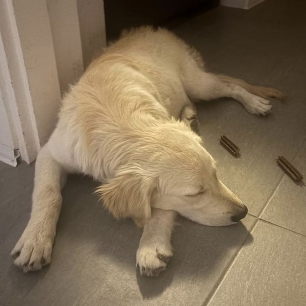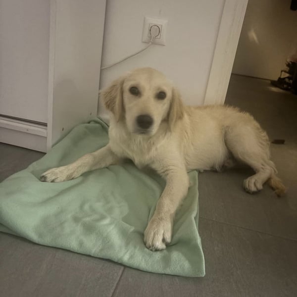 Zunächst wurde er gebadet und von Parasiten befreit – er war stark verschmutzt und roch entsprechend. Momentan lebt Dino in einem privaten Übergangsplatz bei Freunden seiner Retterin. Er ist noch ängstlich und zeigt Bewegungen, die leider darauf hindeuten, dass er geschlagen wurde. Trotz allem ist er unglaublich lieb, sanft und bemüht, alles richtig zu machen. Das Laufen an der Leine kennt er noch nicht, aber er lernt sehr schnell und möchte gefallen.