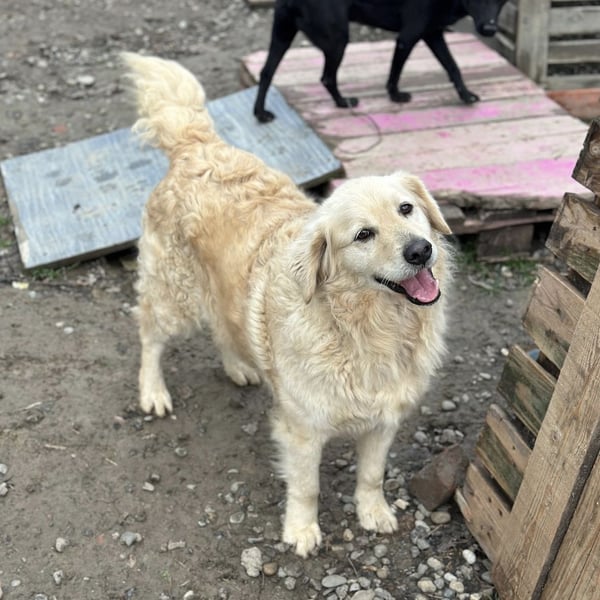 Marta ist ein Mädchen, laut Tierarztschätzung ca. 6 Jahre alt (geb. 01.01.2020), etwa 30 kg schwer und ca. 53 cm groß. Sie ist ein Golden Retriever (Mischling). Sie hat nur einen halben Schwanz, wir wissen nicht ob sie so zur Welt kam oder ob soe es durch ein Unglück verloren hat.