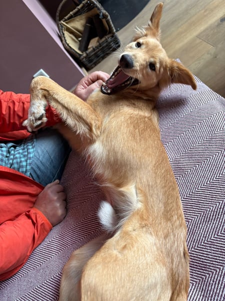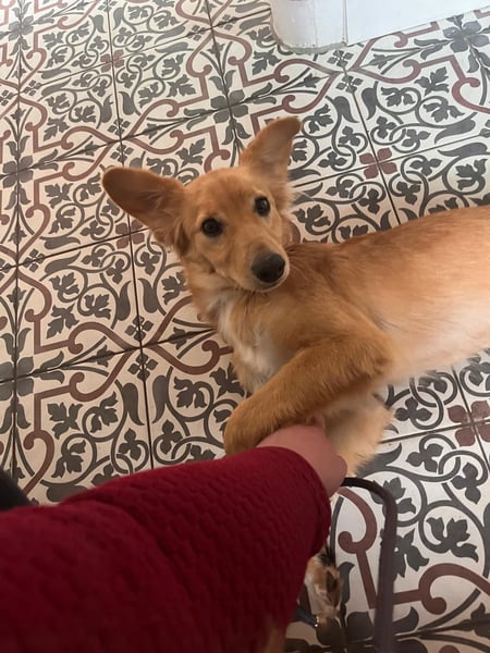 Freddy ist ein super lieber und lernfreudiger Hund. Er hört bereits auf seinen Namen, kennt Kommandos wie "Sitz" und "Körbchen" und bleibt an der Straße brav sitzen. Auch an der Leine läuft er schon richtig klasse und liebt Spaziergänge durch den Wald.
