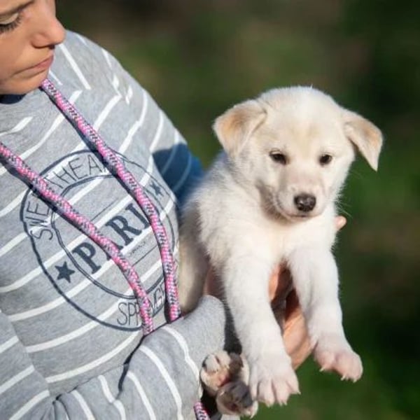 Hiram und Helmi sind typische Welpen: lieb, fröhlich, aktiv und verspielt. Sie sind neugierig und offen, manchmal noch ein kleines bisschen unsicher. In einem liebevollen Umfeld werden sie sich schnell weiterentwickeln, Vertrauen aufbauen und zu tollen Junghunden heranwachsen. Natürlich müssen sie noch alles lernen, was ein junger Hund für das Leben braucht – vom Hunde-ABC bis zu den Alltagsroutinen. Mit anderen Hunden sind sie verträglich und zeigen sich sozial im Umgang.