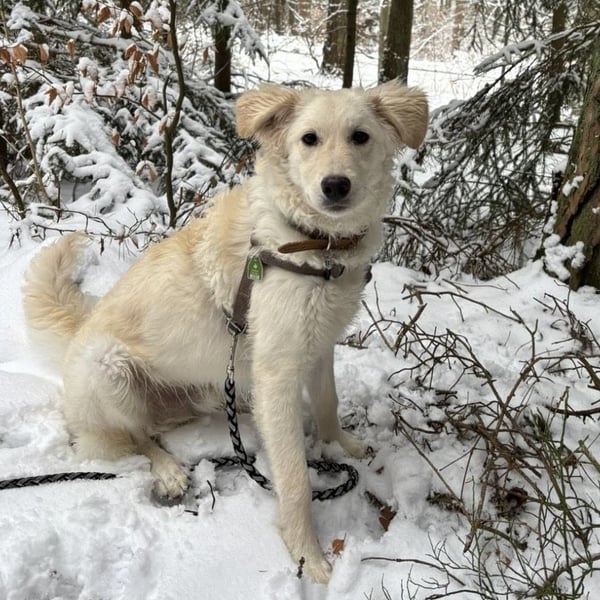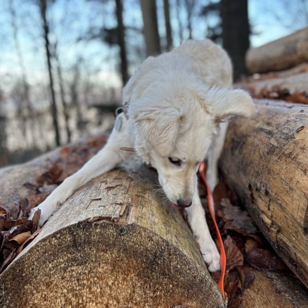 Trotz seines jungen Alters zeigt sich Dobby bereits als sehr schlauer Hund mit schneller Auffassungsgabe. Erste Kommandos hat er schnell verinnerlicht, besonders stolz sind wir auf seinen zuverlässigen Rückruf an der Schleppleine, der schon richtig gut klappt. Auch geistige Auslastung macht ihm großen Spaß: Er spielt gerne mit dem Futtersack, auch ein Schnüffelteppich kommt bei ihm regelmäßig und mit großer Begeisterung zum Einsatz.