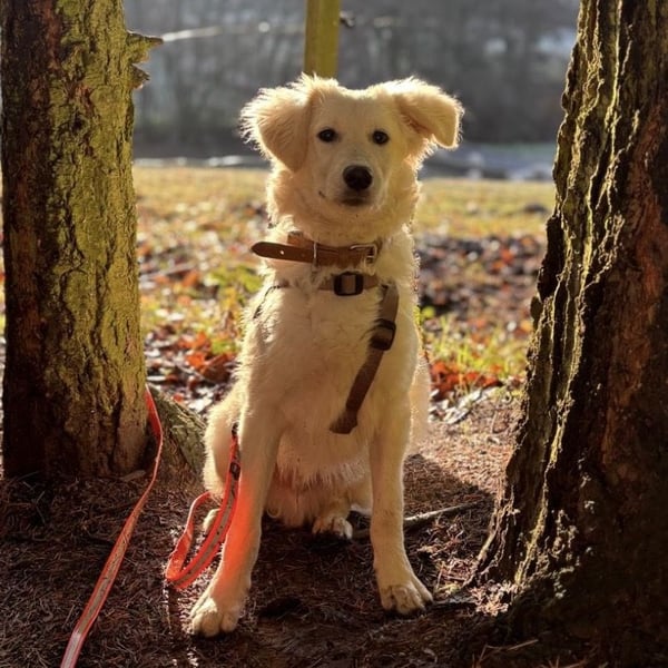 Vermutet wird ein Golden Retriever - Mudi Mischling.