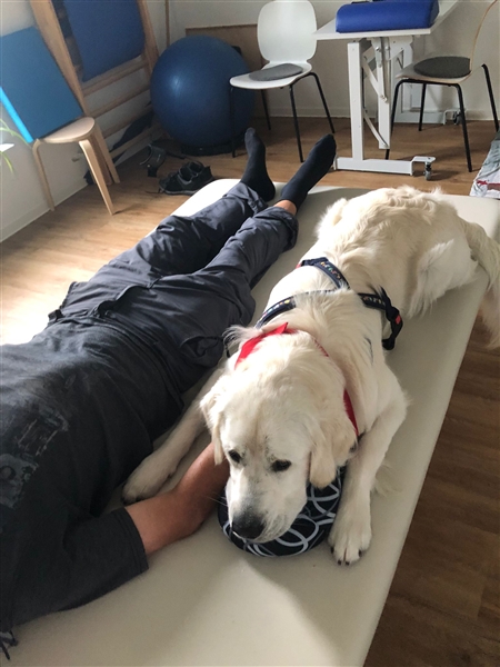Benji ist ein ausgebildeter Therapiebegleithund und zeichnet sich durch sein ruhiges, sanftmütiges Wesen aus.