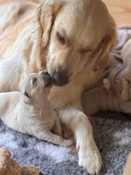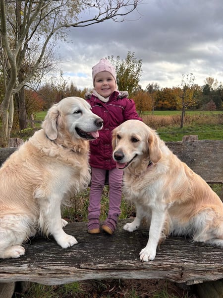 Unsere Welpen wachsen im engen Familienanschluss auf, mitten im Alltag, in liebevollem Kontakt mit Kindern. Eine behutsame Prägung, Ruhe, Vertrauen und Zeit sind für uns selbstverständlich - denn Charakter entsteht von Anfang an.